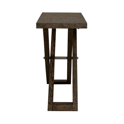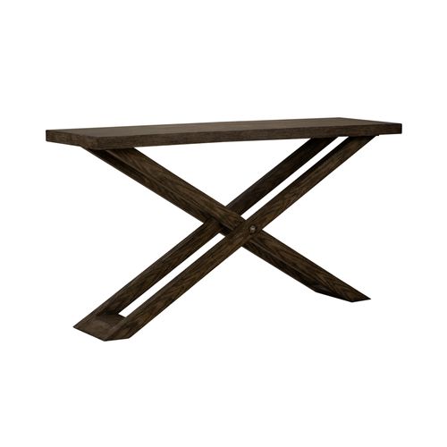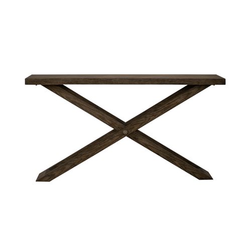 Elevate your home with the stylish Crossroads sofa table. Made with expert craftsmanship, this table features Rubberwood Solids and Wire-Brushed Split Heart White Oak veneers in a stunning Russet Brown finish. The modern X-style leg base adds a touch of urban flair and is anchored by a sturdy metal stretcher, making it a must-have piece for any entryway or living room. Product Details: Wood: Rubberwood Solids with Split Heart White Oak Veneers Finish: Russet Brown X-Style Trestle Base Large Metal Stretcher Perfect for Accent Pieces Open Leg Base Design.