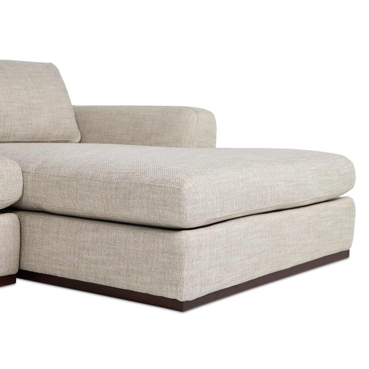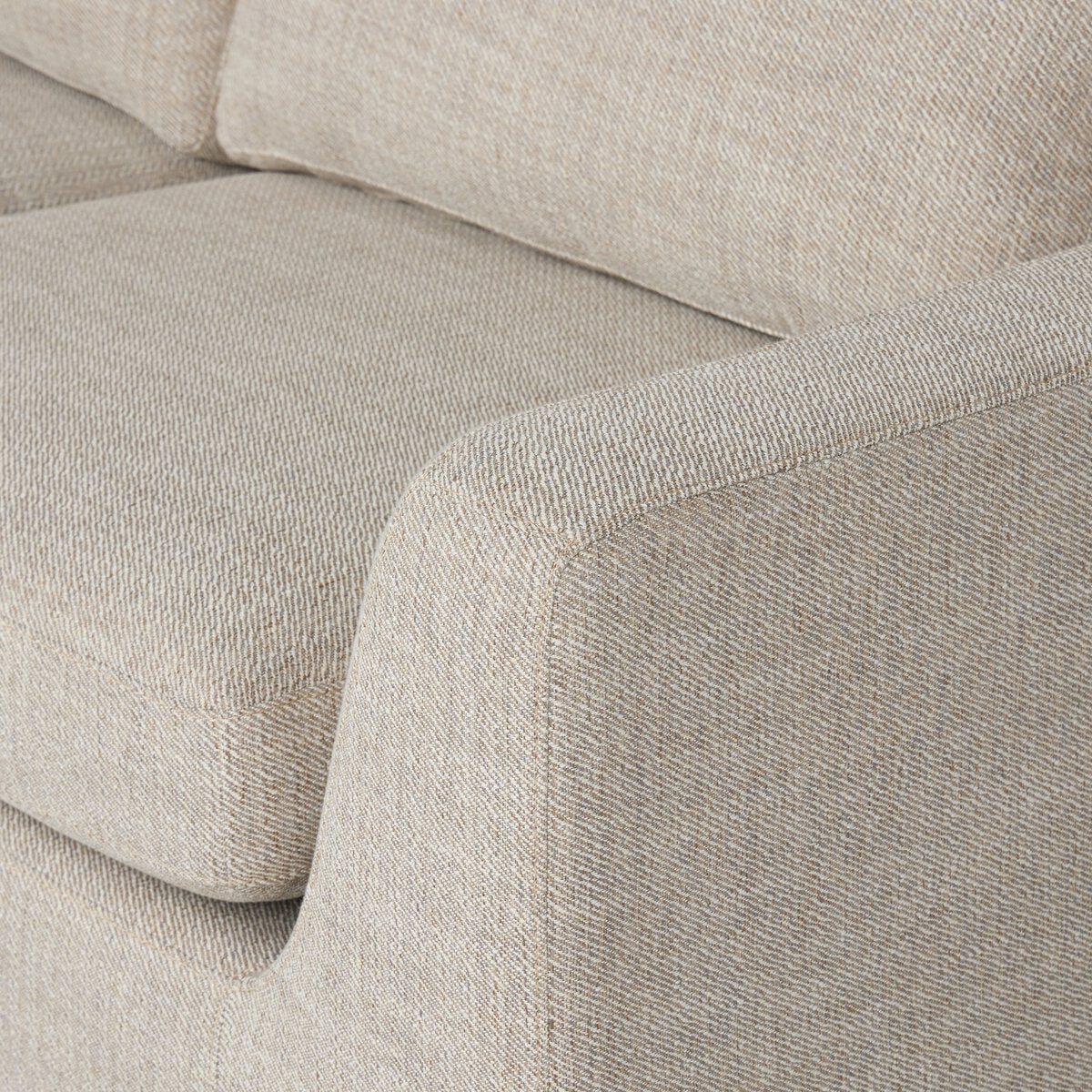 Simply styled for everyday lounging. A textural poly/linen blend covering is made for comfort, with subtly flared sides for shapely effect and a wrapped plinth base. Right arm facing piece to matching sectional.