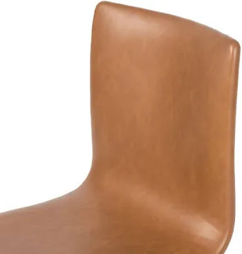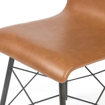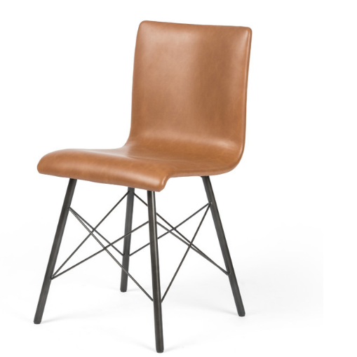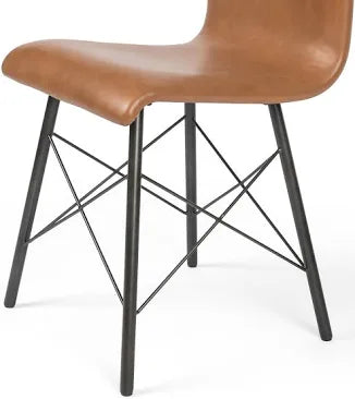 Mid-century styling brings beauty to the table. Modern S-curves in faux-leather sit above an architectural, black-waxed iron base.