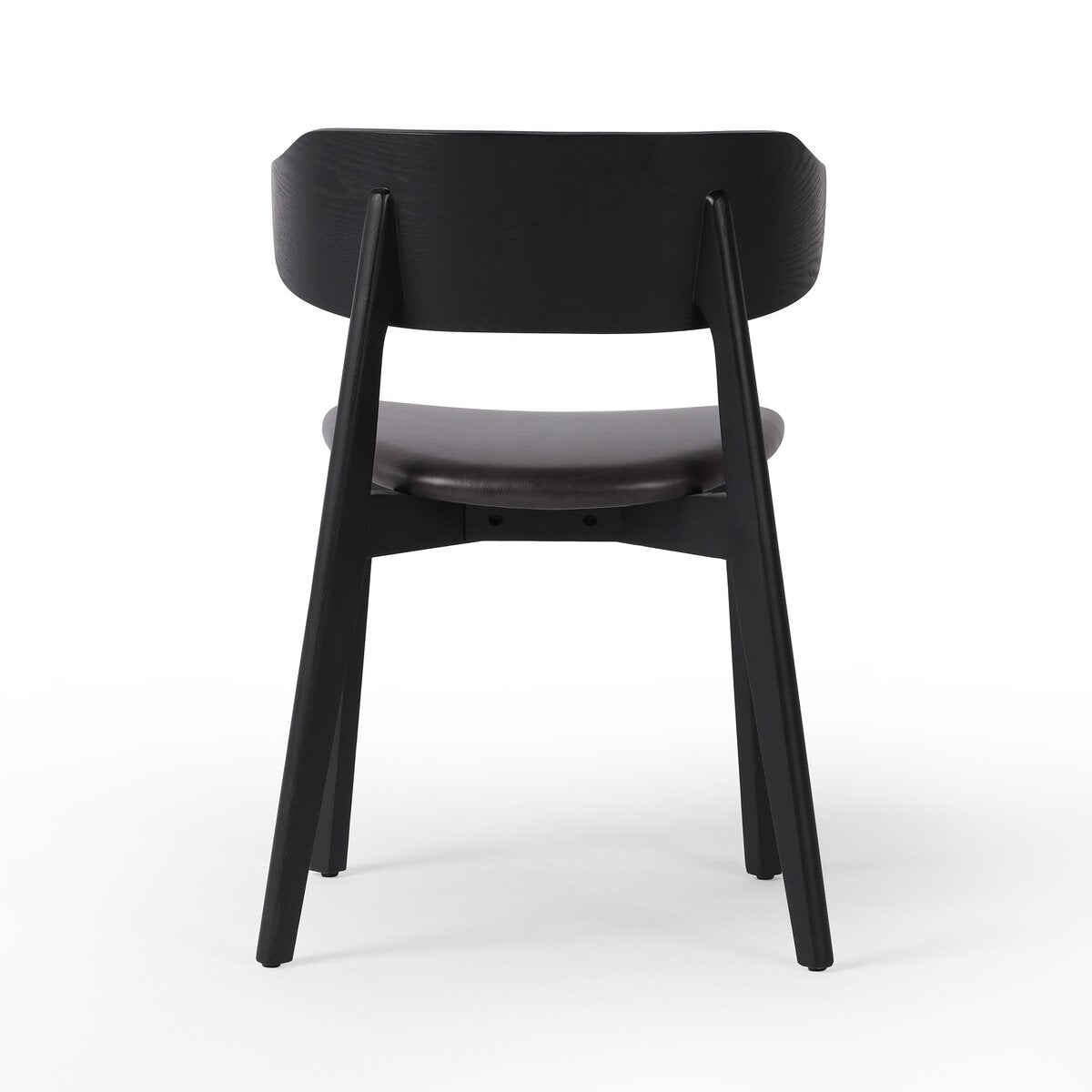 A fresh, exaggerated take on the wing-back dining chair. Finished a classic jet black, a mix of solid ash and ash veneer makes a modern and shapely seating statement with midcentury undertones. Complemented by a cushioned seat in black top-grain leather exclusive to Four Hands.