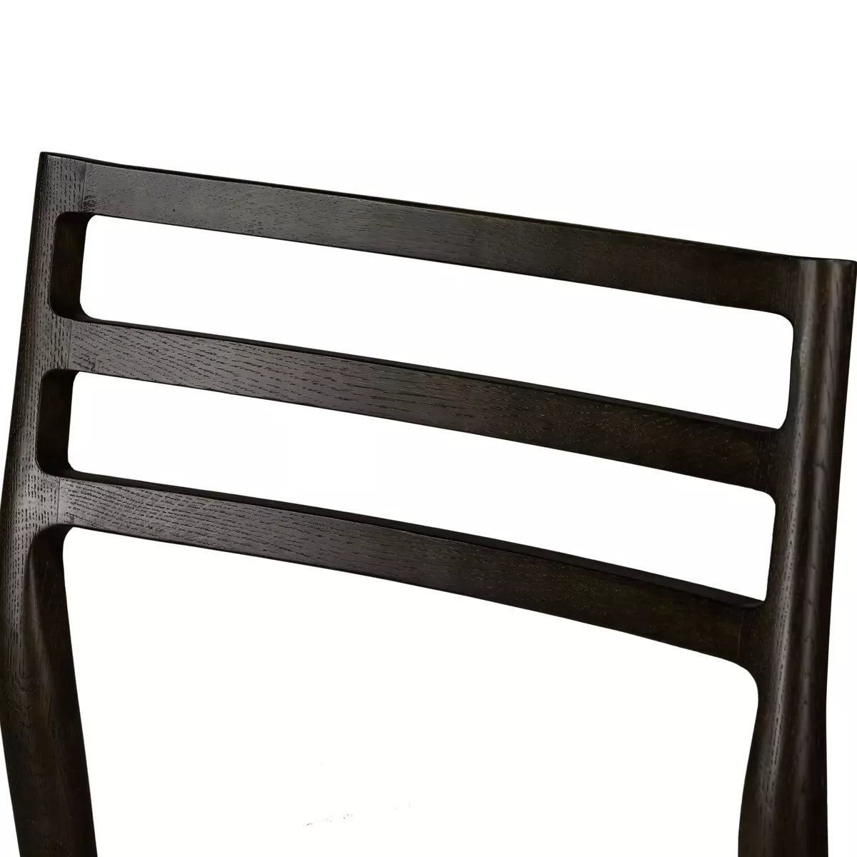 Fresh materials redefine the classic ladderback chair. Scrubbed oak framing is finished in carbon for a clean, open look with natural depth. Carbon-toned seating blends cotton with linen for a textured feel and comfortable sit.
