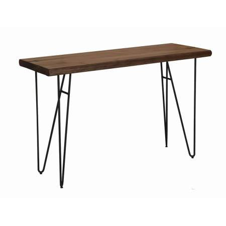 With a nicely balanced silhouette and soft, classic charm, this sofa table is a must-have accent. Enjoy the personality of mid-century styling. A natural honey finish on its tabletop reflects an inviting warmth. Classic hairpin legs in a gunmetal finish invoke a love of retro flavor. This sofa table is a great option for anchoring a couch or filling a space in an open wall.