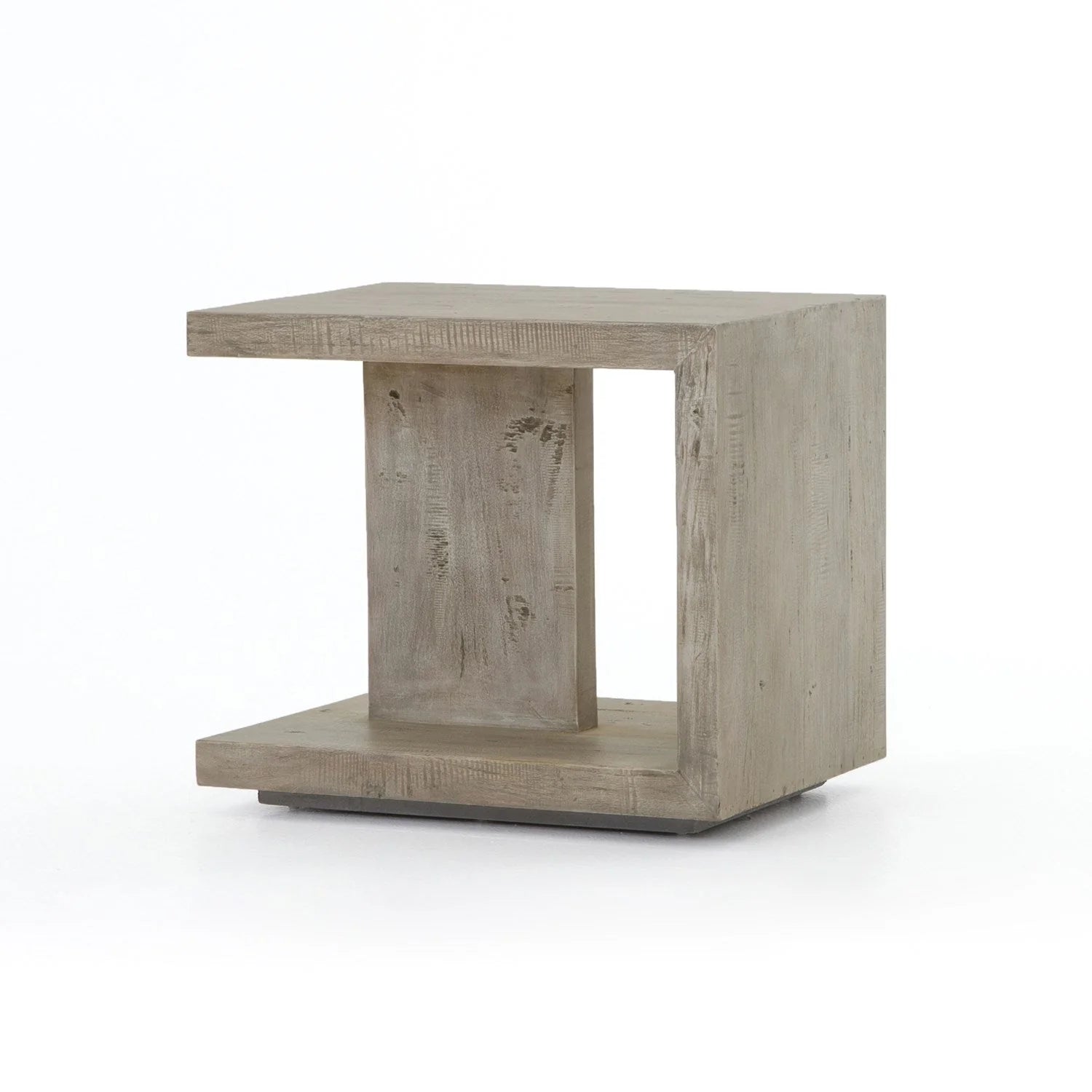 Vintage grey mahogany takes on a monolithic look. Substantial proportions and simple lines make a statement.