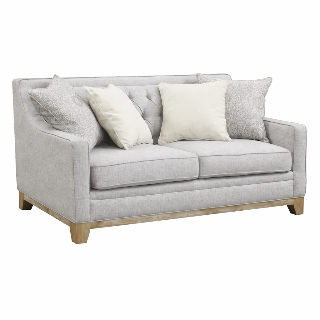 Experience the flawless fusion of tailoring, fabrics, textures, and materials with Jaizel Loveseat. This stunning piece features classic button tufting, textured and patterned fabrics, weathered woods, and sleek lines for a comfortable yet enchanting look. Perfect for both formal and informal settings, this loveseat comes with four accompanying throw pillows.