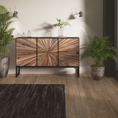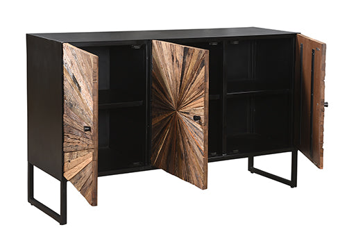 Constructed with a combination of reclaimed wood and metal materials, our LR Reclaimed Industrial Sideboard showcases a unique and durable design that will elevate any space it is placed in.