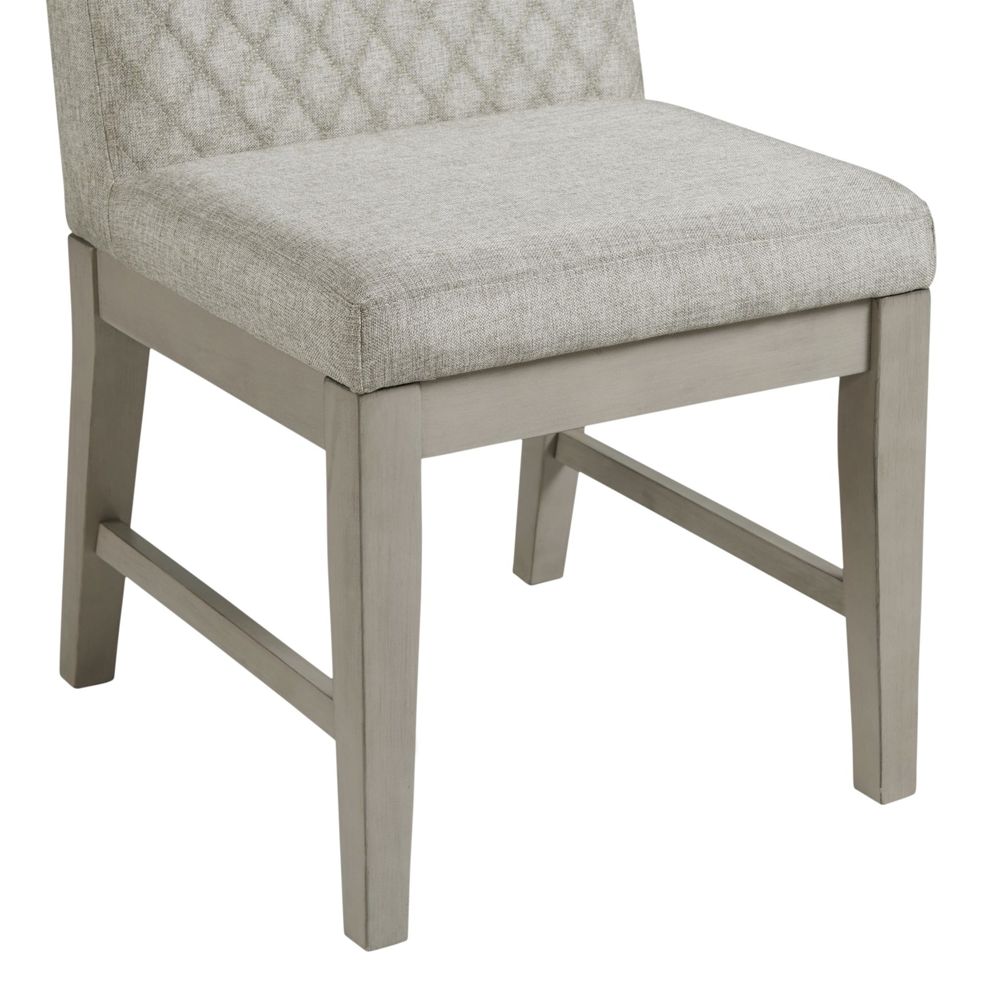 Crafted using acacia veneer and manufactured woods in a inviting gray color. This side chair set displays upholstery at the back and seat with sturdy wooden legs. Showcases intricate diamond tufting at the back. The seat cushion features foam cushioning for added comfortability and support. Weight capacity of one chair is 300 lbs.