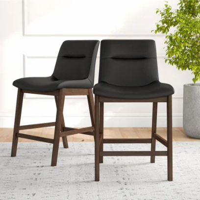 Experience the luxurious feel of faux leather upholstery paired with a sleek, mid-century modern walnut base. Elevate your dining experience with the Marsha Counter Height Chair.