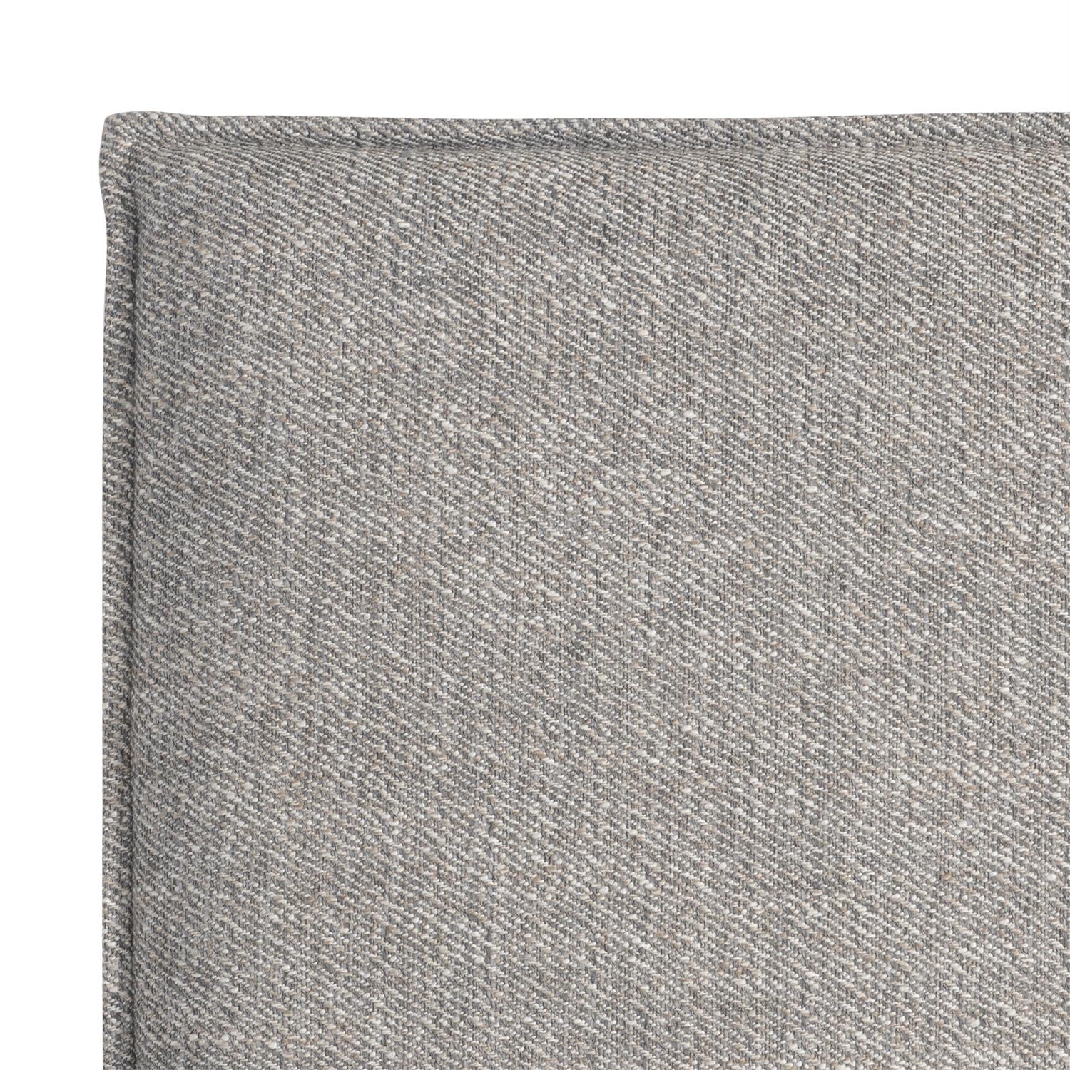 - Fully upholstered headboard, footboard & side rails with exposed wood feet in Sutton finish