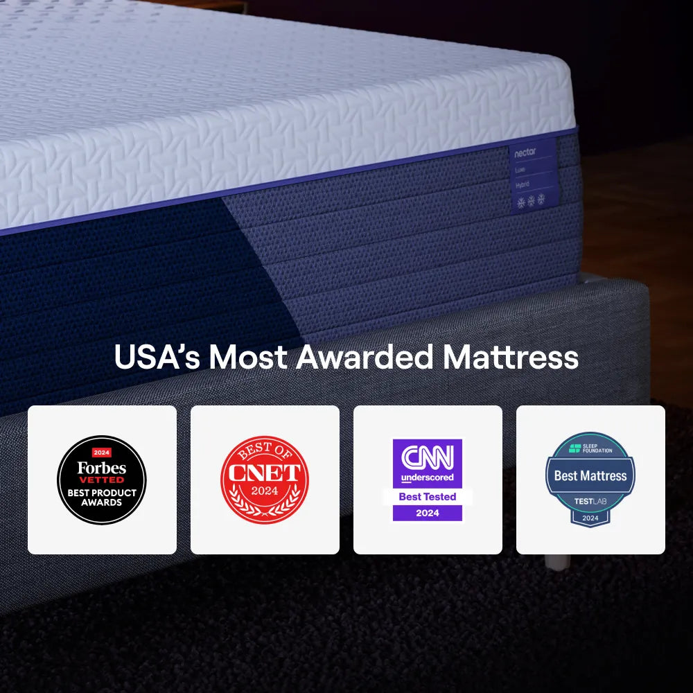 The Nectar Luxe 14” Hybrid Mattress contains more than double the cooling fibers and triple the pressure-relieving memory foam of the Nectar Classic Hybrid. Enjoy extra refreshing coolness and contouring support, plus the upgraded edge support, motion control, and airflow coming from rows individually-wrapped innerspring coils.