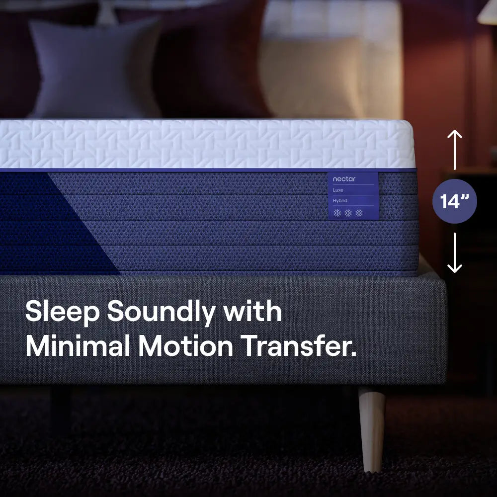 The Nectar Luxe 14” Hybrid Mattress contains more than double the cooling fibers and triple the pressure-relieving memory foam of the Nectar Classic Hybrid. Enjoy extra refreshing coolness and contouring support, plus the upgraded edge support, motion control, and airflow coming from rows individually-wrapped innerspring coils.