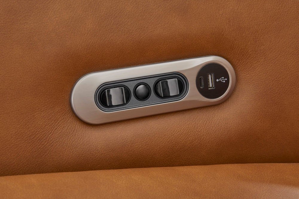 The Remmington Vintage Caramel Power Swivel Glider Recliner features a power recline and adjustable power headrest, allowing personalized comfort. Constructed from top-grain leather, it offers durability and a refined aesthetic with detailed stitching. Its swiveling and gliding capabilities enhance mobility, while slightly curved arms optimize seating space. Compatibility with FreeMotion® brackets and batteries simplifies installation.
