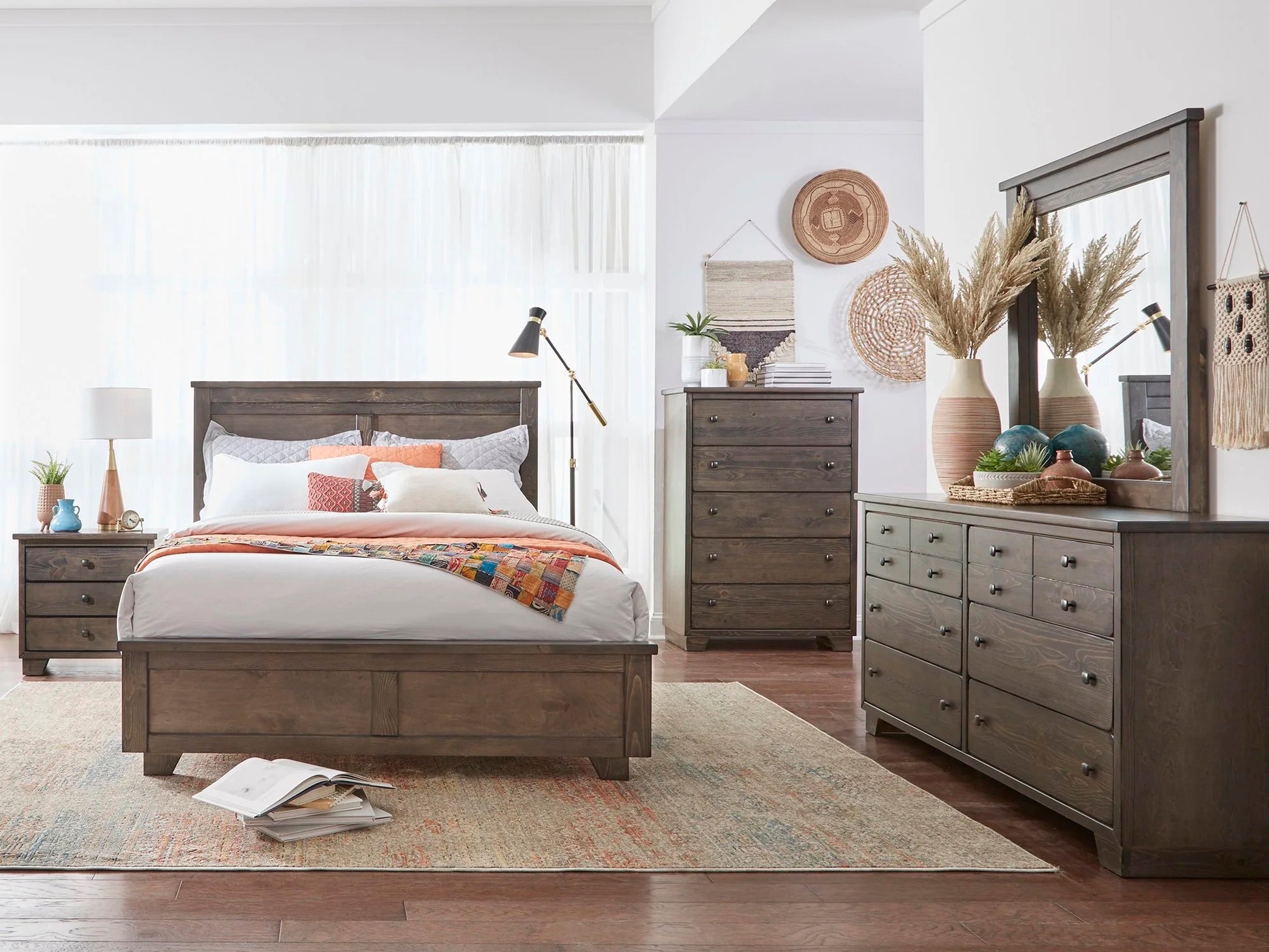 Crafted from solid wood, the River Oaks King Bed offers a sturdy and durable foundation for a comfortable night's sleep. The panel design adds a touch of elegance to any bedroom. Its low profile design also provides easy access, making it a practical choice for any user.