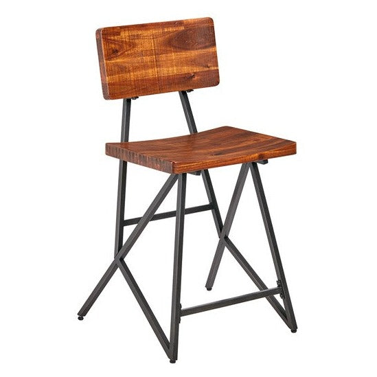 Embrace a rugged and modern aesthetic in your kitchen with the Trestle Counter Stool. Crafted with heavy planks of distressed reclaimed wood, this stool exudes an industrial charm with its metal frame. The warm and inviting solid amber wood adds an inviting touch, while the gunmetal finished legs ensure a strong and sturdy base.