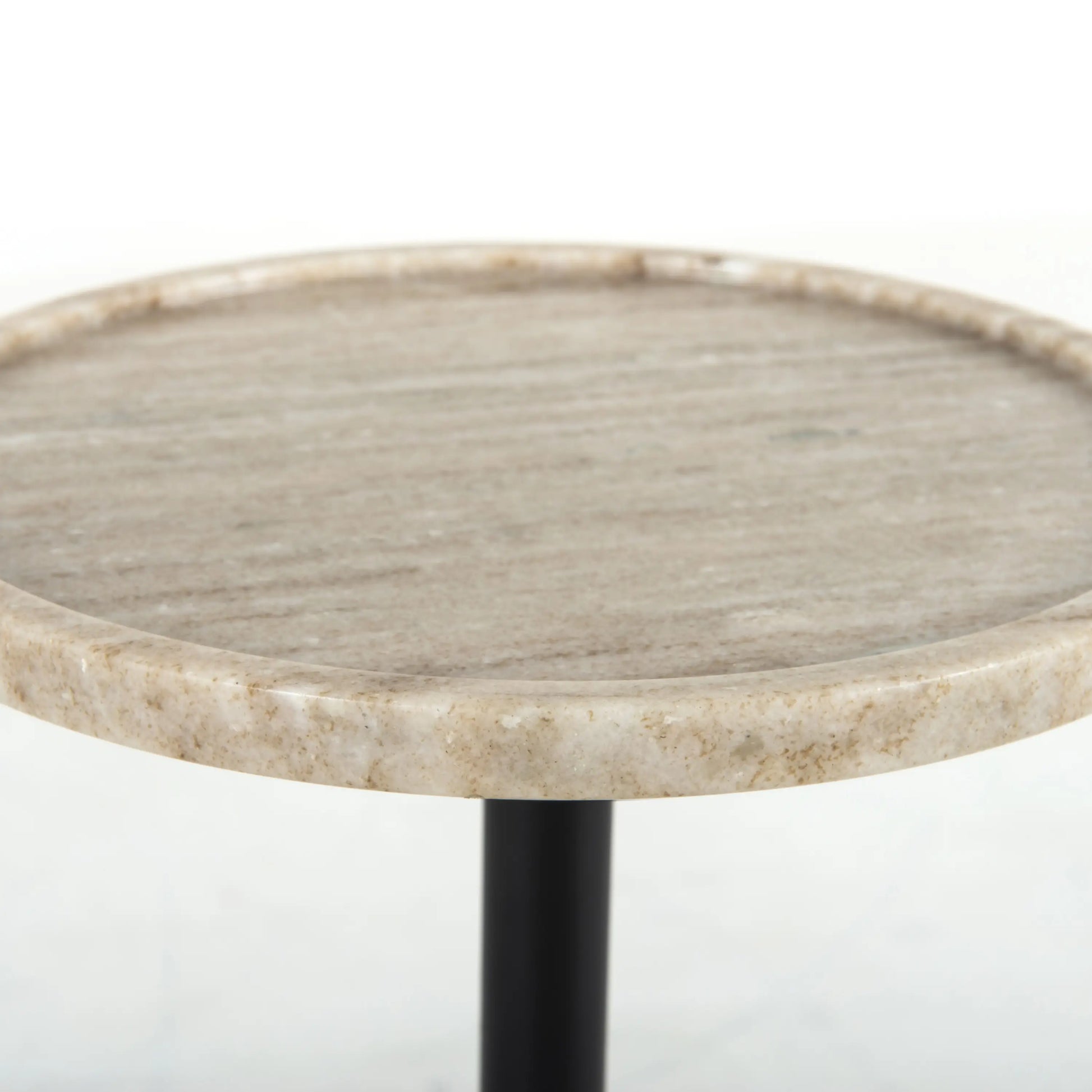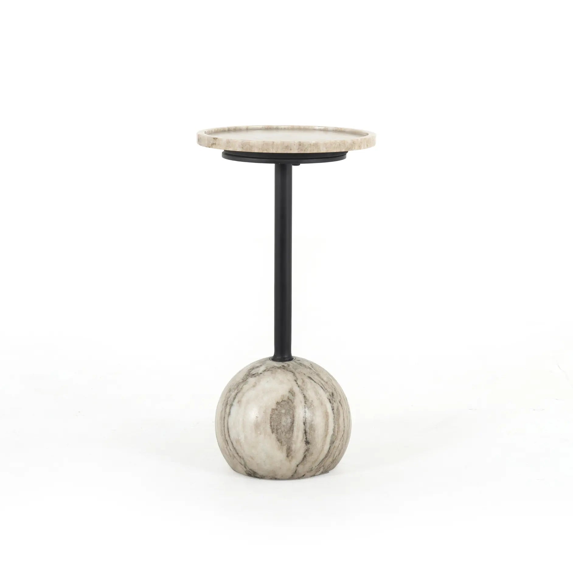 Layer in sophistication anywhere. A dramatically shaped base of white antique marble supports slim iron piping and rounded tray-style tabletop - the perfect place to perch a drink or favorite book.