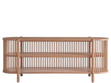 Transform your space with the Weekender Console, featuring three open-air shelves flanked by vertical wooden decorative posts. Create depth and intrigue in any room with this stunning piece.